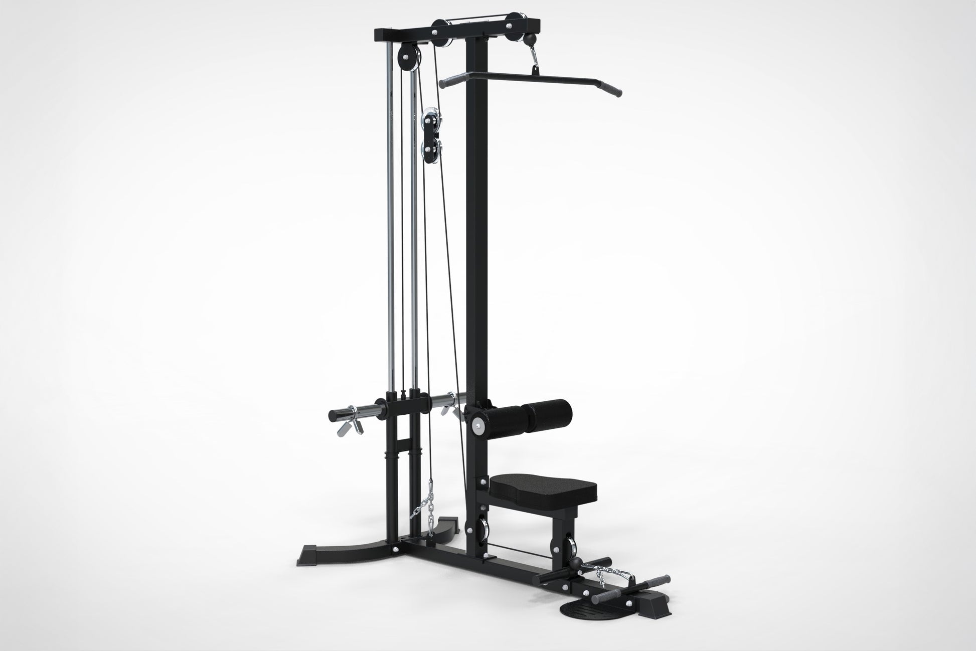 Die Latzugstation SQMIZE® POWER PACK LMP800 verbindet Spitzenqualität mit professioneller Performance. Das Stahlprofil von 50 x 70 mm legt das Fundament. Das Herzstück bildet das hochwertige Seilzugsystem mit großen Aluminium-Rollen. Der laufruhige und gelagerte Gewichtsschlitten mit zwei verchromten Führungstäben gewährleistet ein Workout am Latzug auf Studioniveau. Die Konstruktion ist standsicher und für Belastungen von bis zu 300 kg ausgelegt. Die Kniepolsterhöhe ist 4-fach verstellbar. Aufnahmen in 30 mm. Inklusive Adapter für 50 mm Hantelscheiben. Sitz- und Kniepolster mit rutschfesten Bezügen.