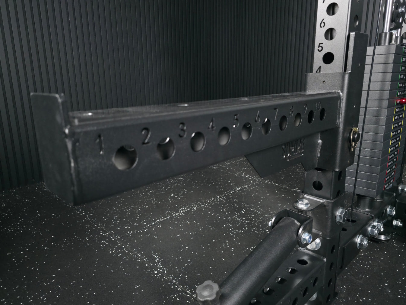 - Sandwich J-Cups: Hochbelastbare Hantelablagen mit vollständigem Nylonschutz inklusive.