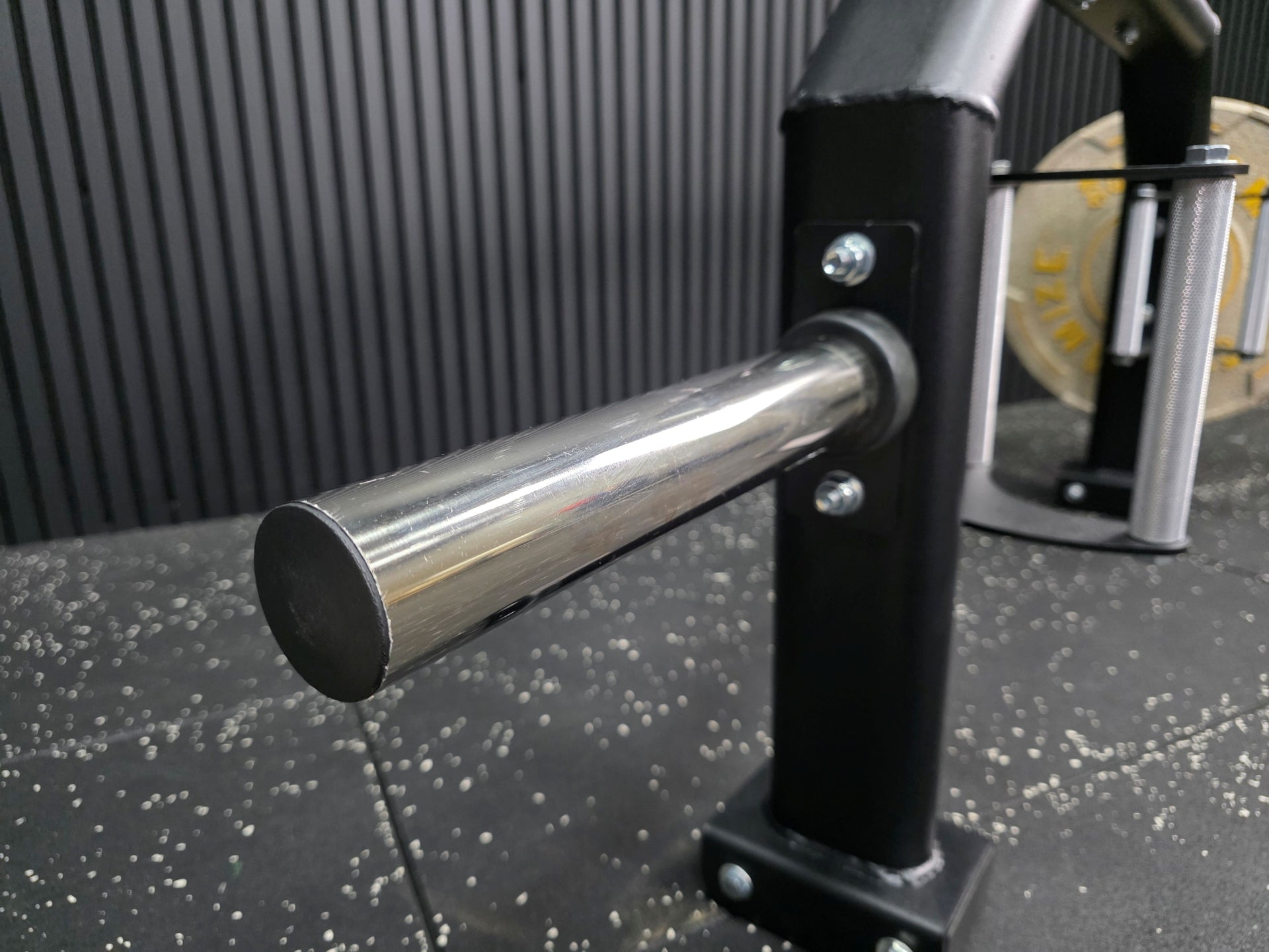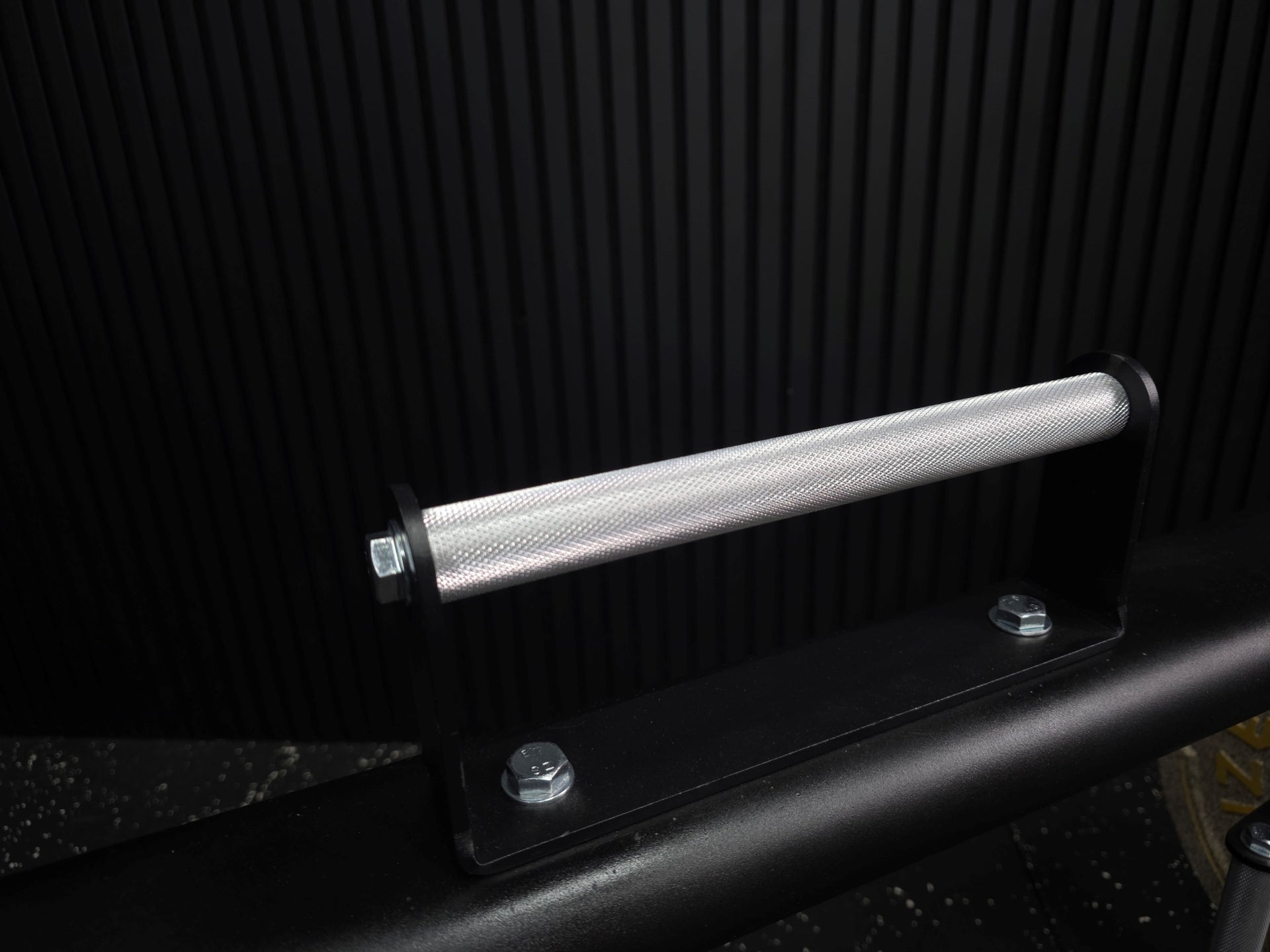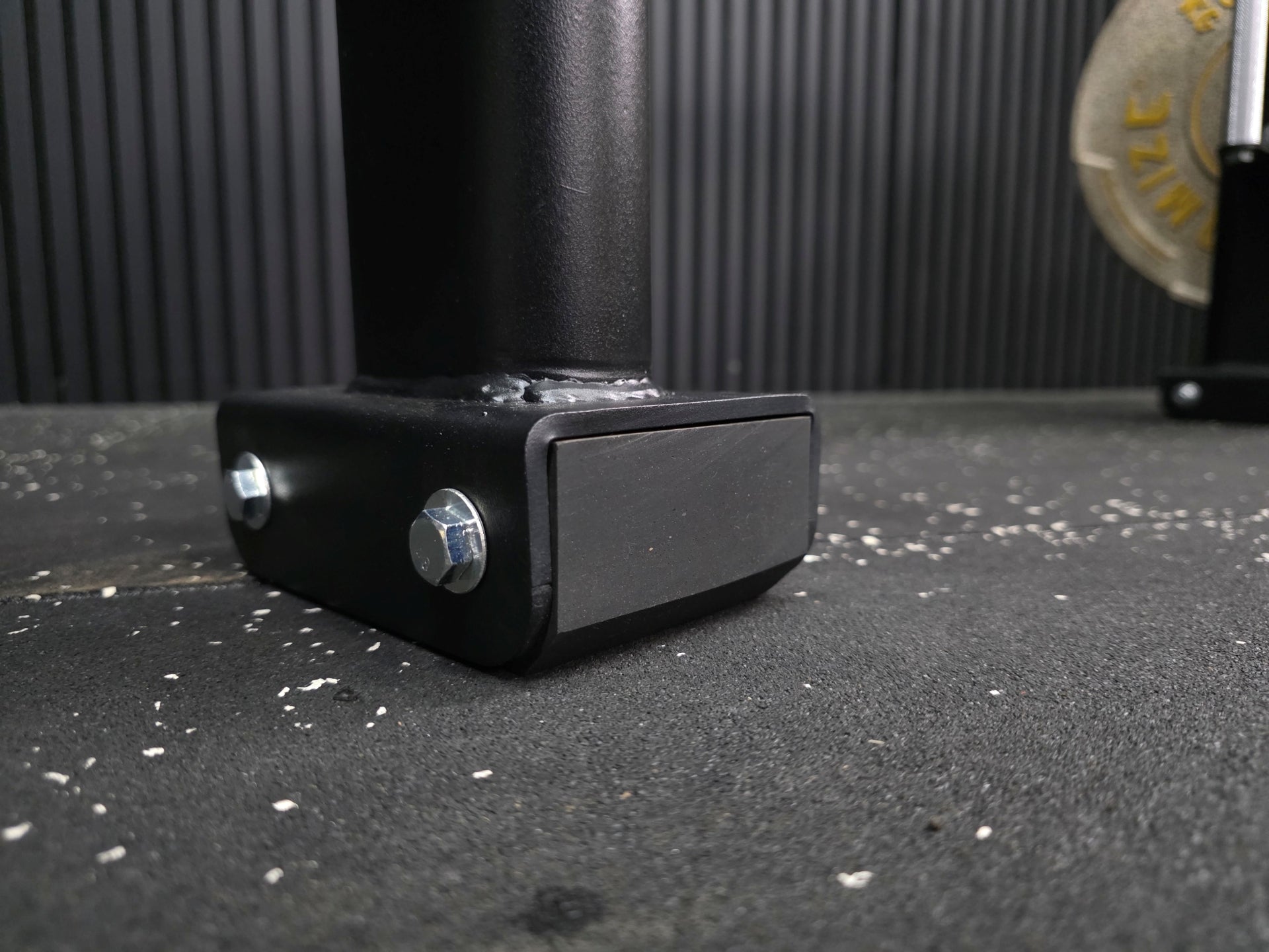 Zwei XXL Super Standpuffer sorgen für zuverlässigen Rundumschutz beim Ablegen der Bar und schonen gleichzeitig Boden und Equipment. Die Aufnahmen für 50 mm Plates sind im hochwertigen Hard Chrome Finish gehalten und garantieren langlebige Stabilität. Die solide Stahlrohrkonstruktion, massiv und pulverbeschichtet in elegantem Schwarz, steht für beste Verarbeitung mit hervorragendem Rostschutz.