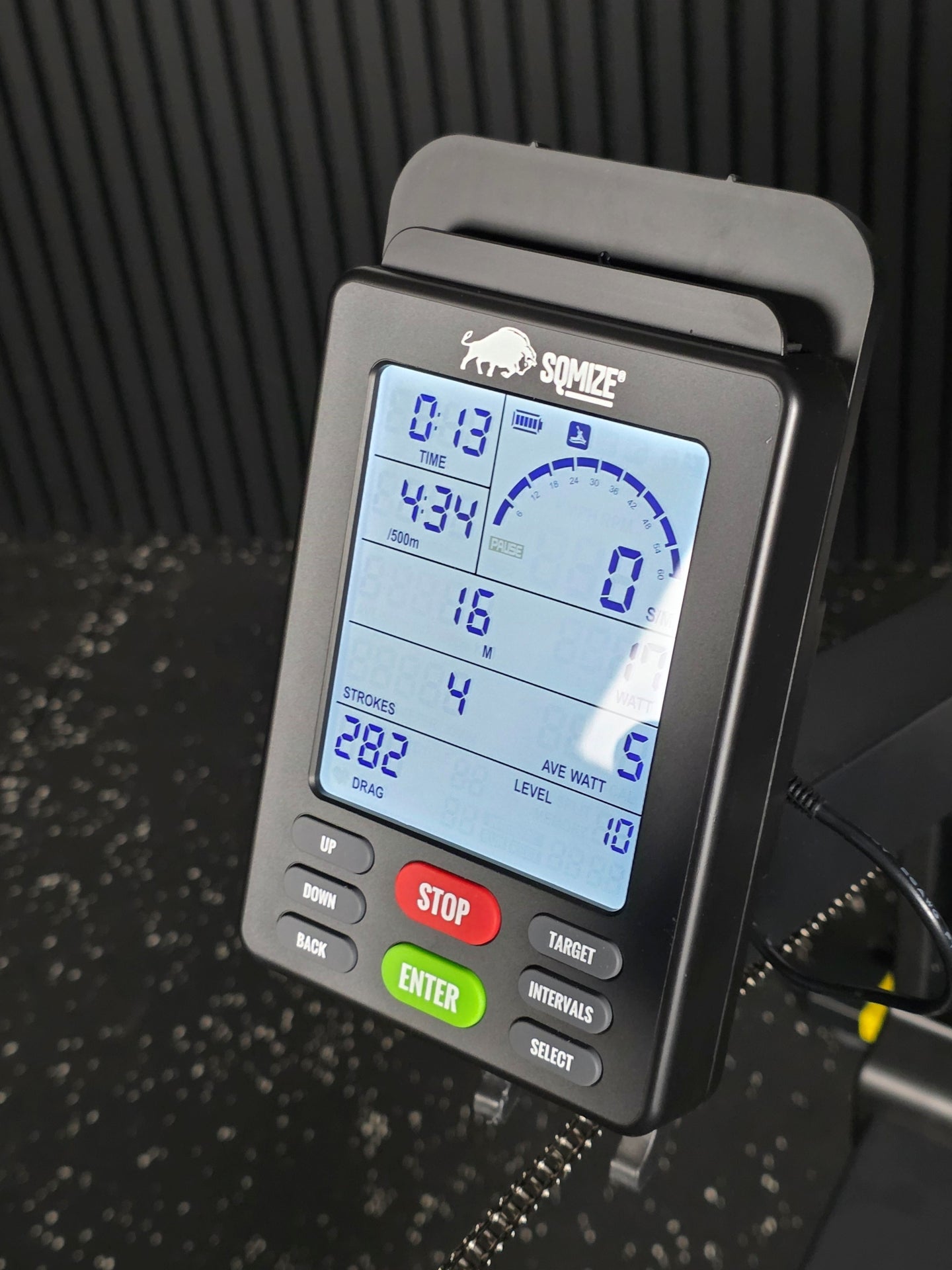 - Deine Messwerte: Schlagfrequenz, Zeit, Zeit/500m (inkl. Durchschnitt), Schläge (Frequenz/Gesamt), Zyklus, Widerstandsstufe, Watt (inkl. Durchschnitt), Puls, Gesamtmeter (inkl. Prognose/30min), Kalorien (inkl. Kalorien/Std.)